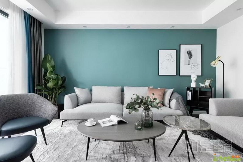 室內(nèi)設(shè)計師在局部采用深綠、淡藍、淺灰色的同時,依然保留了大面積空間的純白,以塑造基本的純凈感。電視墻左側(cè)木柴的堆砌則體現(xiàn)出獨特別致的北歐元素。