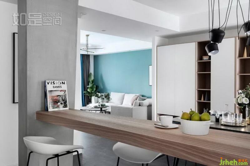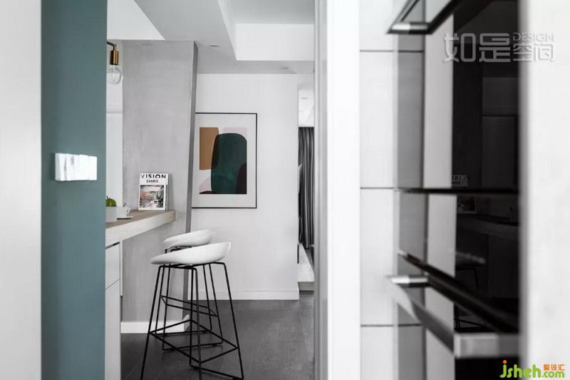因為吧臺的設立,使餐廳與書房的關系,即相互聯(lián)系又功能區(qū)隔