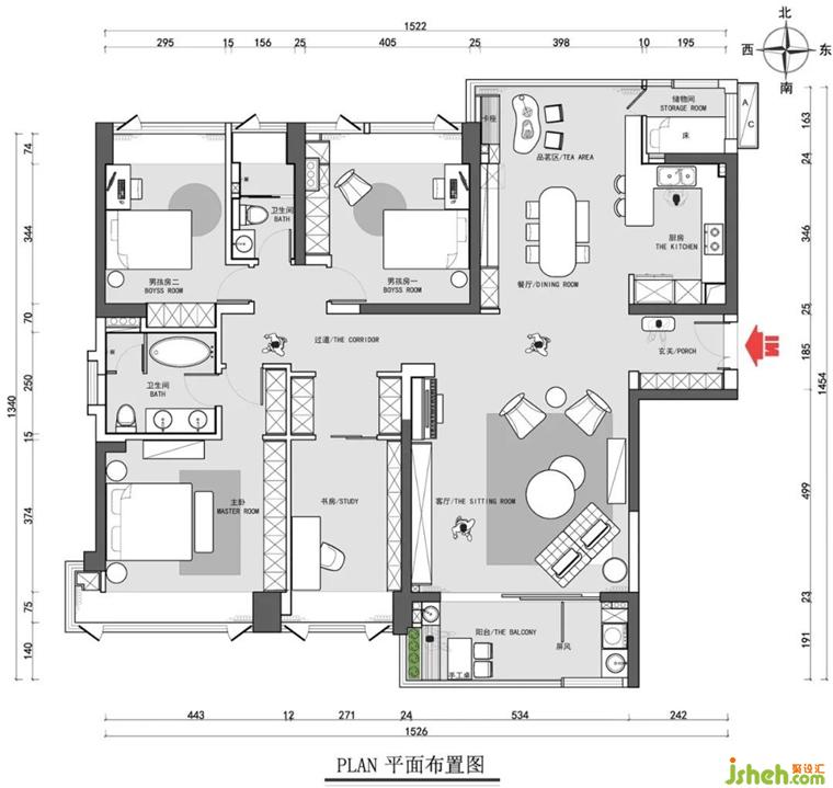 ● 取消原有三個衛(wèi)生間,改為兩個,得以空間平衡。