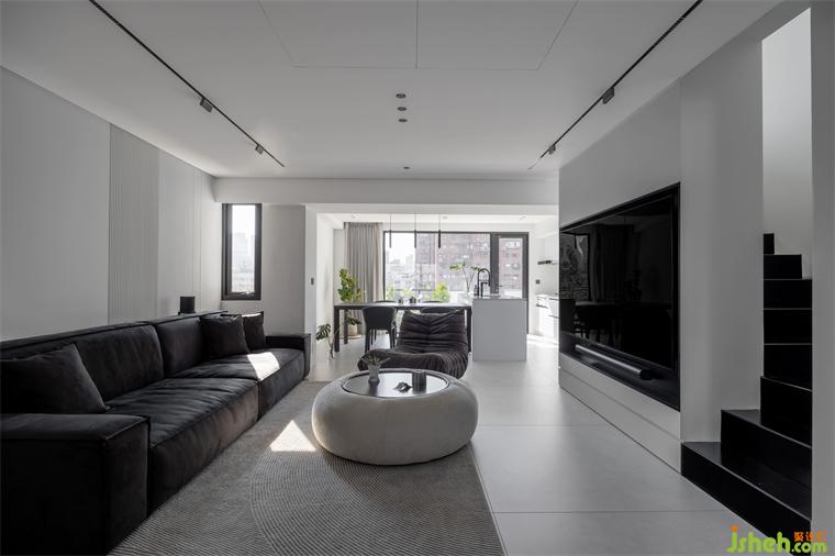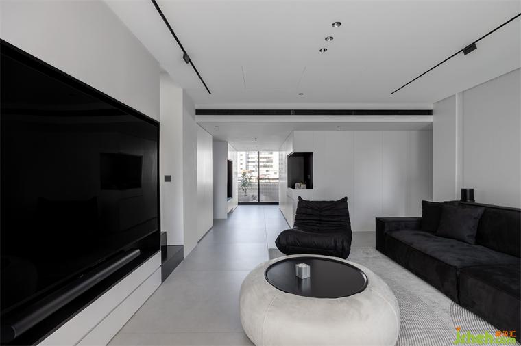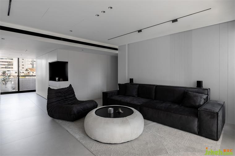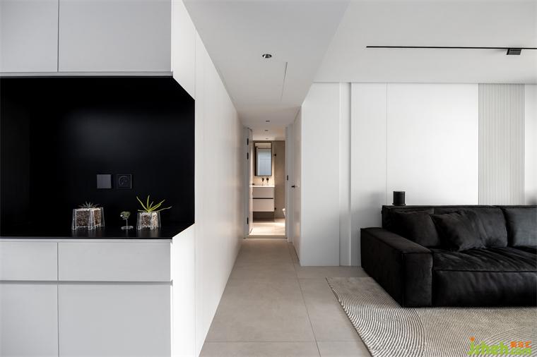 因應(yīng)屋主喜愛(ài)簡(jiǎn)約干凈色調(diào),于大面積的天地壁上鋪以白凈基底,量體內(nèi)的虛空間、設(shè)備線條及家具配色則輔以黑灰色系,利用材質(zhì)本身質(zhì)地與柜體線條勾勒隱形軸線,搭配同色質(zhì)調(diào)及客制燈光,使整體重量感與平衡感達(dá)至舒適水平。