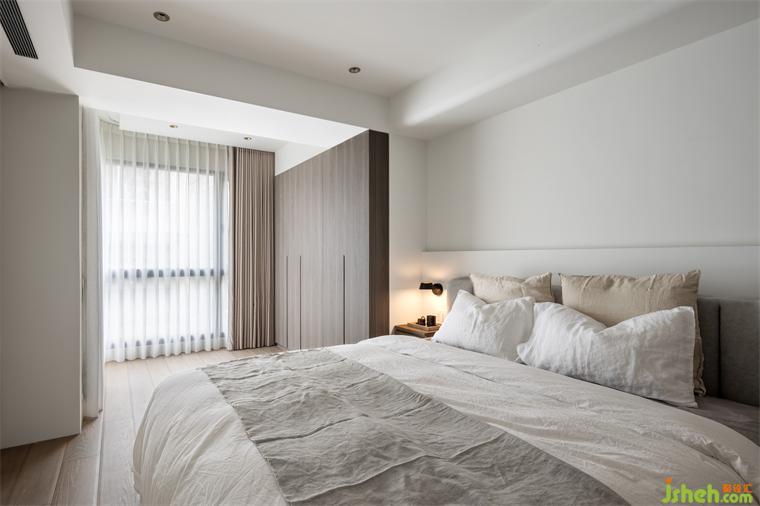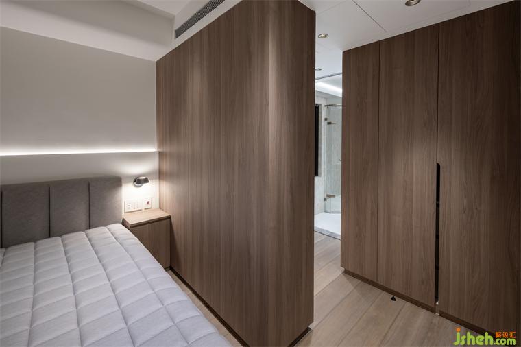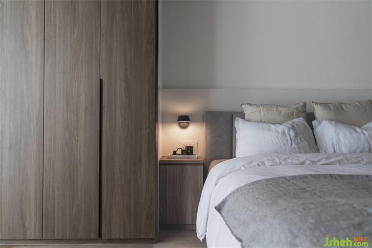 選材則延續(xù)公領(lǐng)域主調(diào),大平層設(shè)計以低彩度木紋及素簡白凈涂料,搭佐米黃色系軟裝,襯托空間柔靜舒適感,回歸純粹休憩本質(zhì)。