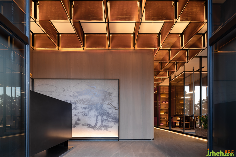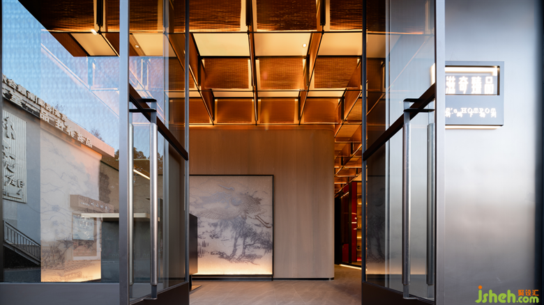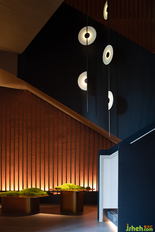 仰頭望去,餐廳設計師在滋奇臻品的空間上方將揚州的印記——竹簾經(jīng)過設計,作為入口廊道天花的裝置構架,讓顧客在入口空間留下深刻的記憶點。