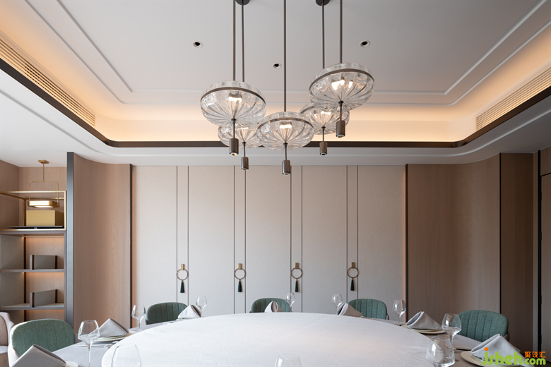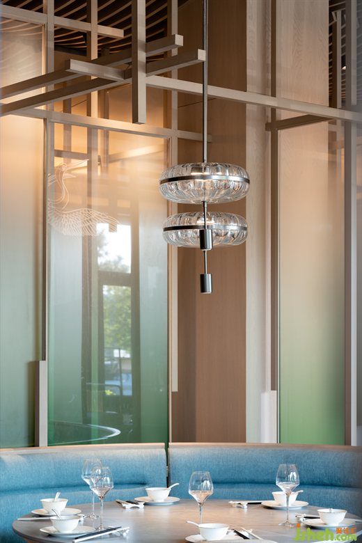 設(shè)計師將傳統(tǒng)揚州元素與國際化表達方式相融,突破傳統(tǒng)淮揚菜空間調(diào)性的形式美感,展現(xiàn)了“揚州人心中的國際,外來客心中的揚州”。