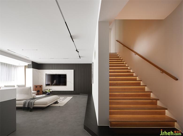 拾階而上,緩緩亮起的燈光牽引出樓梯動線,恬靜而柔美,家裝設(shè)計完成公區(qū)到私區(qū)的銜接轉(zhuǎn)換的同時,讓人倍感溫馨。