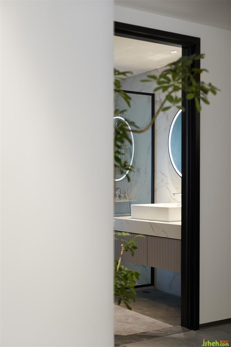 公衛(wèi)的設(shè)計與整體空間相呼應(yīng),簡約而明快,白色盥洗臺自然清爽的質(zhì)感,家裝設(shè)計營造出潔凈的洗漱環(huán)境,滿足居住者對空間的使用需求。