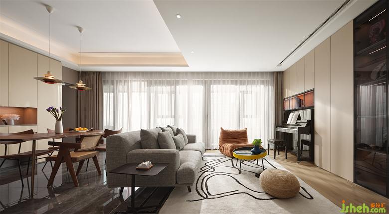 家裝設(shè)計(jì)師將原戶型中公區(qū)的一堵墻打掉,連通客餐廳,使空間更加開闊,公共區(qū)域洄游動(dòng)線流暢,增強(qiáng)了空間互動(dòng)性和縱深感。