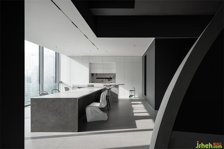 沙龍區(qū)的硬朗直線與公共辦公區(qū)域的優(yōu)雅弧線相結合,剛柔相濟,展現(xiàn)出幾何的藝術美感,辦公室設計使空間富于變化,實現(xiàn)了一種微妙的平衡。