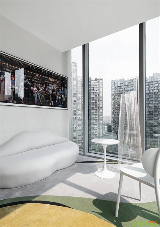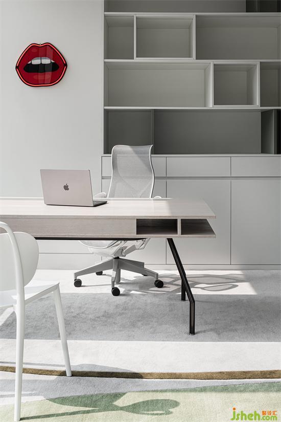 純凈的白色辦公室,藝術簡約,紅唇點染,熱情嫵媚,突出個性審美的積極熱忱。