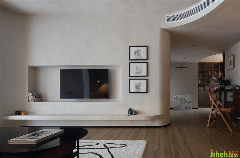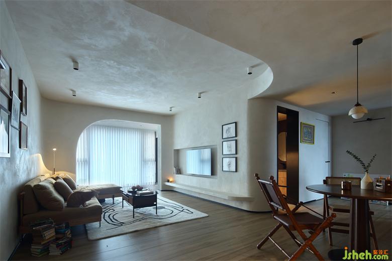弧形墻體與頂部過渡,憑借婉曲的線條勾勒出空間溫潤(rùn)有致的肌理脈絡(luò)。家裝設(shè)計(jì)弧形元素的應(yīng)用中和了空間的空與靜,讓空間更加立體完整而富有層次。