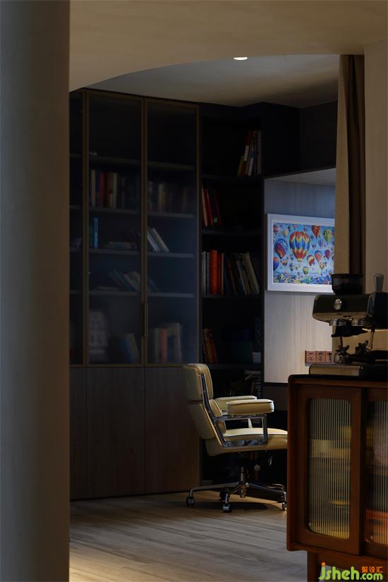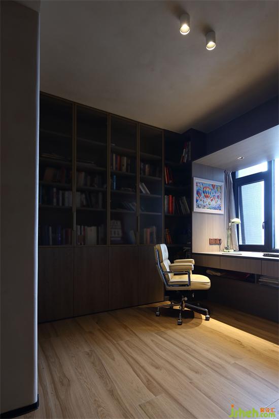 設計師將次臥墻體予以拆除,將原有空間改造為開放式書房,用來滿足業(yè)主的日常閱讀需求。將原有的飄窗改造為書桌,極大提升了空間利用率。
