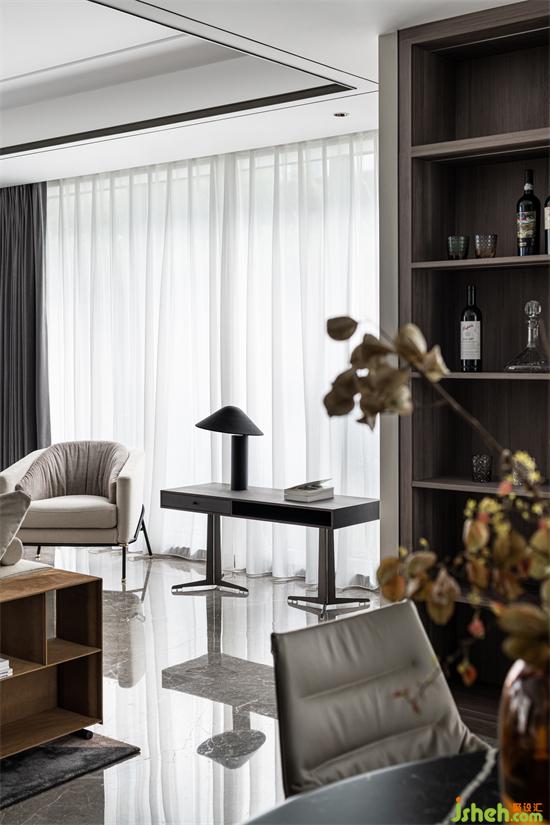 大面積的落地窗將室外光線引進(jìn)來,讓室內(nèi)更加通透明亮。