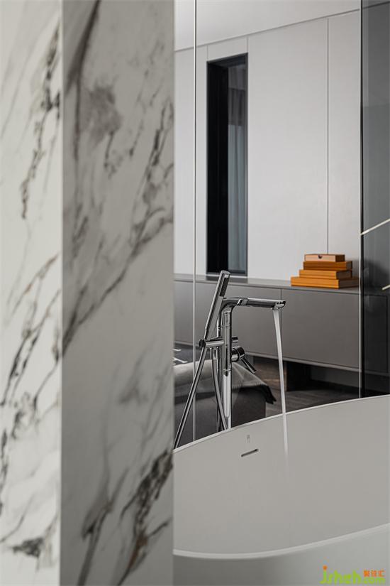 主衛(wèi)以經(jīng)典的白色為主色調(diào),流動(dòng)的紋路順暢自然,整個(gè)空間纖塵不染,潔凈有加。