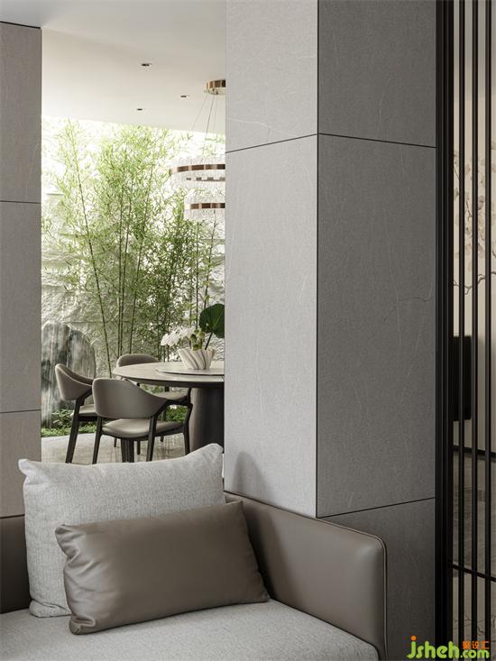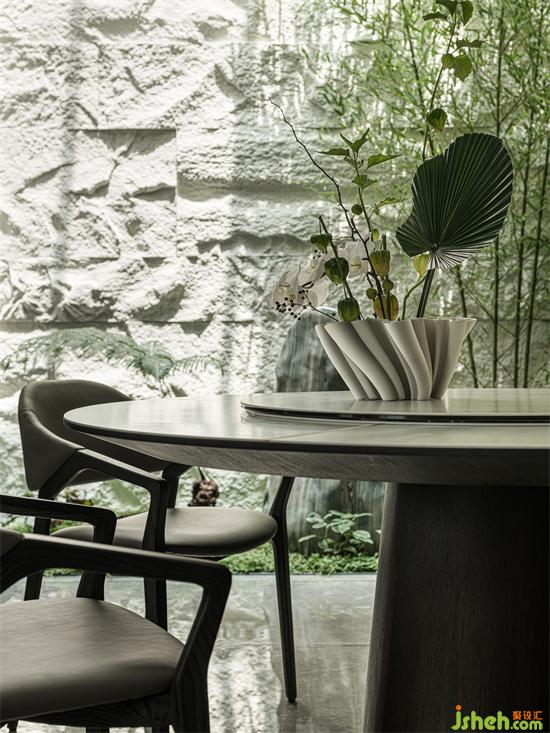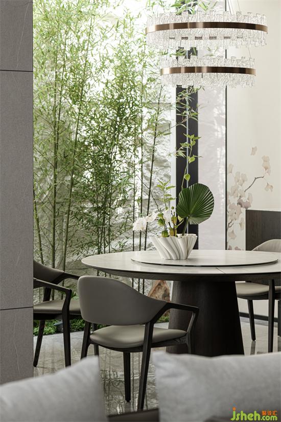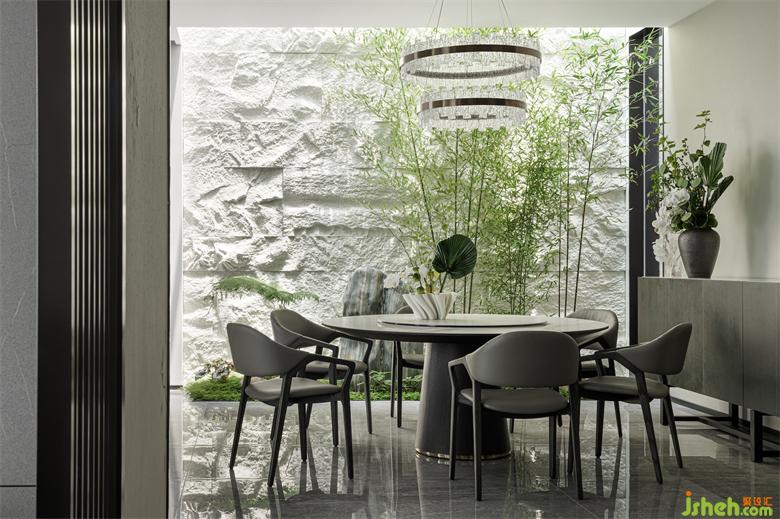 客餐廳通透的動線讓家人間的溝通交流更加方便,塑造著彼此間更為深刻的情感鏈接。別墅設(shè)計綠意裝飾的餐廳,在家中的很多角度進(jìn)行觀看都能達(dá)到一種園林造景的意趣。