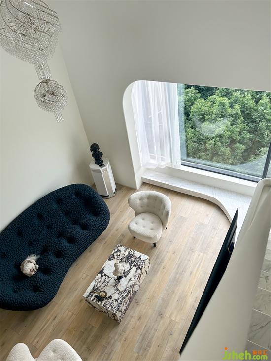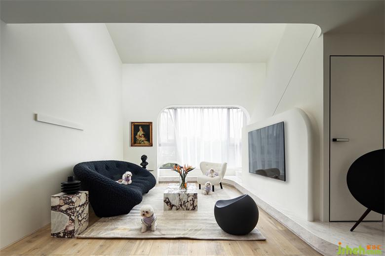 業(yè)主是一對年輕夫妻,熱愛旅游、閱讀,既喜歡有歷史有底蘊的老家具又喜歡時尚的事物。兩個人都非常喜歡寵物,家中養(yǎng)了5只狗狗和1只貓貓,活潑可愛的小家伙們?yōu)檎麄€家?guī)砹撕芏嗫鞓贰蓚€人都喜歡相對簡單的空間,希望家以白色為主,干凈純粹,不需要太多色彩,材質(zhì)的選擇也傾向于簡單自然。