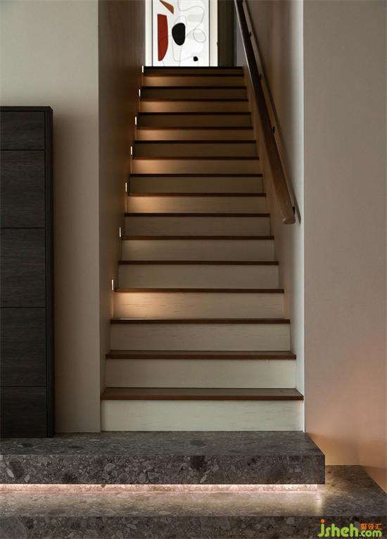 樓梯將空間劃分為樓下的社交休閑空間和樓上的私人休息空間,公私空間有著明確的區(qū)分,互不干擾。抽象版畫(huà),麓湖蕓臺(tái)漫躍層裝修設(shè)計(jì)以極簡(jiǎn)線條與圖形的碰撞,呼應(yīng)了整個(gè)空間的設(shè)計(jì)調(diào)性。