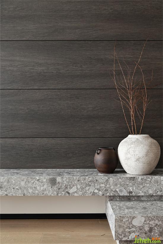 木質(zhì)的溫潤(rùn)烘托出空間的自然質(zhì)樸氛圍,在當(dāng)下的鋼筋水泥世界中,找到屬于自己的一份安靜之所。倔強(qiáng)的枝丫在瓶中向上伸展,有一種別樣的侘寂之美。