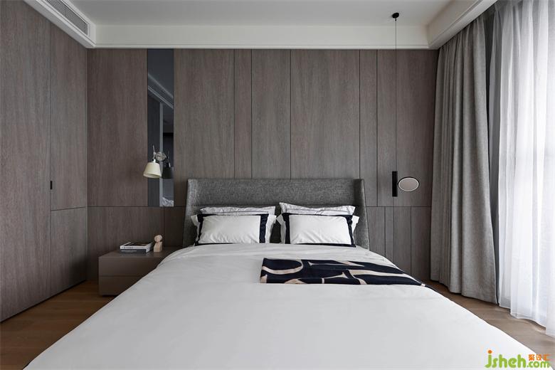位于二樓的主臥是一個(gè)套房,便于居住者平日的生活起居。麓湖蕓臺(tái)漫躍層裝修設(shè)計(jì)深灰木質(zhì)墻面的裝飾,營(yíng)造出沉靜安穩(wěn)的睡眠環(huán)境,容易讓人安下心來(lái),卸下一整天的疲憊,沉浸在舒適的休憩之中。
