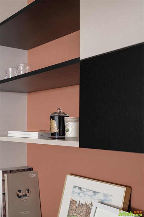 擁有小巧外觀的圓形臺燈,投下溫馨而昏黃的燈光,將整個臥室籠罩在寧謐的休憩氛圍之中。家裝設(shè)計清雅綻放的粉色花朵,畫框的亮眼橙色,都給室內(nèi)增加了不一樣的活力。