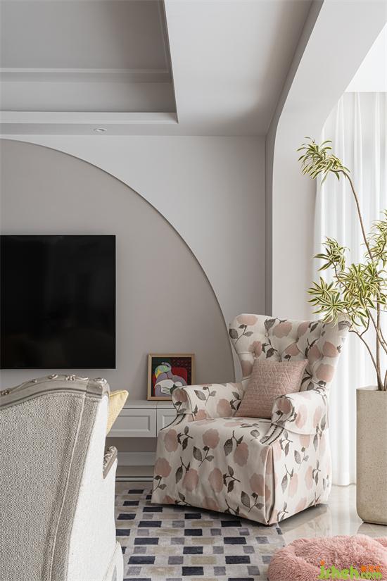 女業(yè)主十分愛花,室內(nèi)插花布置也都是自己一人完成。收納柜上的花枝橫斜溢出,充滿了春天的氣息,滿室盈芬,生機勃勃。