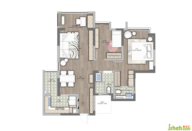 業(yè)主是幸福的一家三口,男女主人性格開朗,對于生活充滿熱忱,女兒在他們細致的呵護下,健康快樂地成長著。女主人非常重視平日里對孩子的陪伴,家中陳設(shè)布置除了考慮整體的審美品位之外,還格外注重對兒童空間的利用與打造。
