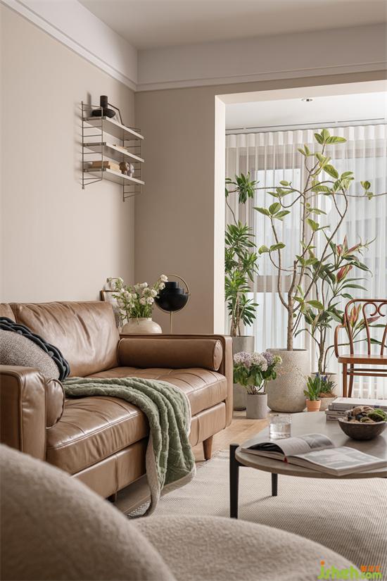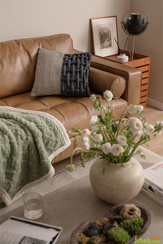 棉麻的白色沙發(fā)與抱枕,同樣也為空間的自然氣息加持,溫柔的弧形設(shè)計,別具一種柔雅恬靜的俏皮之感。