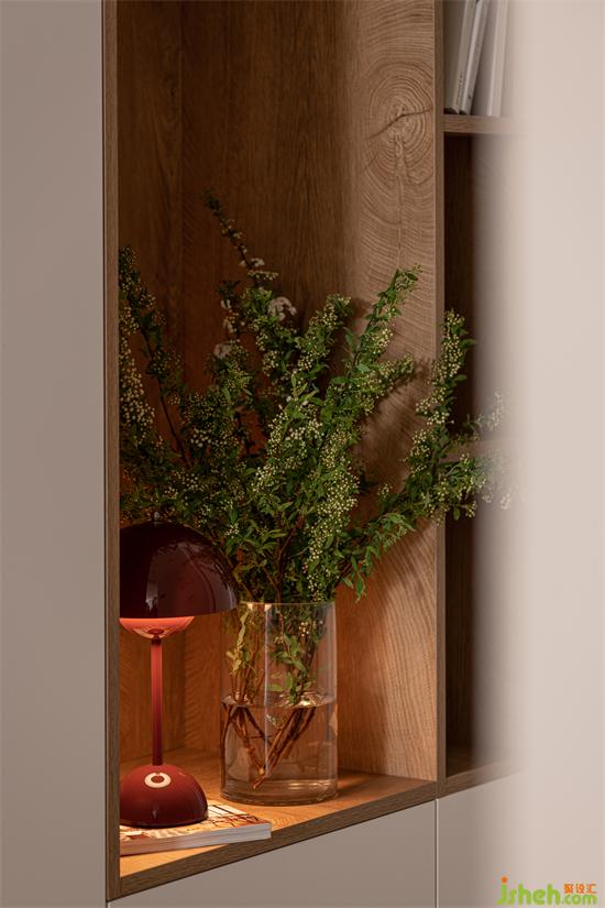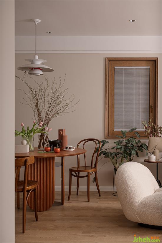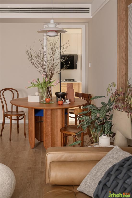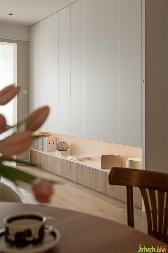 入門玄關(guān)處以蔥郁瓶盞做裝飾,在昏黃光線的氤氳下,別具溫馨質(zhì)感。成都家裝設(shè)計(jì)木質(zhì)紋路漾開一圈圈“漣漪”,輕輕訴說(shuō)著時(shí)光的柔靜與恬淡。