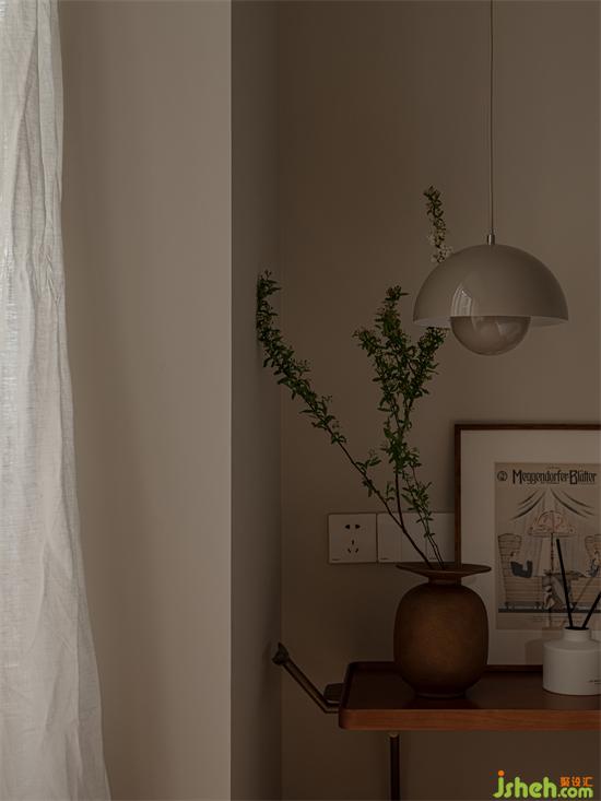 靜謐的室內(nèi),讓人感到好像時(shí)光都慢了下來(lái),簡(jiǎn)潔素雅的布置,營(yíng)造出一種侘寂之感。