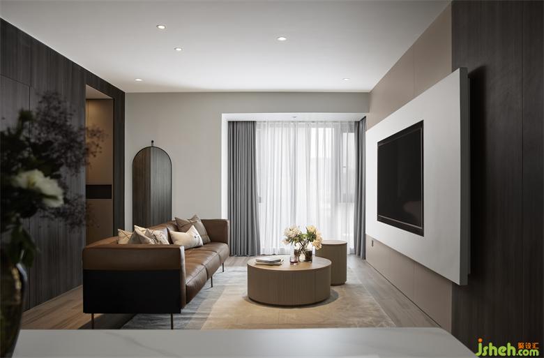 地毯選用素凈的顏色,與整個(gè)空間的簡(jiǎn)約風(fēng)格相得益彰。質(zhì)樸厚重的木質(zhì)圓形茶幾自帶收納功能,成都新綠季節(jié)家裝設(shè)計(jì)將功能與美學(xué)結(jié)合得恰到好處。