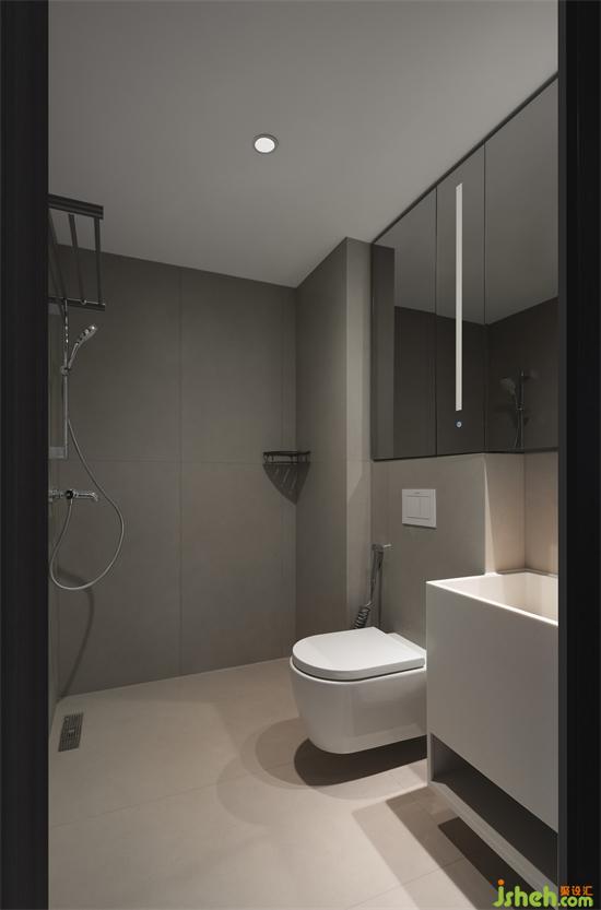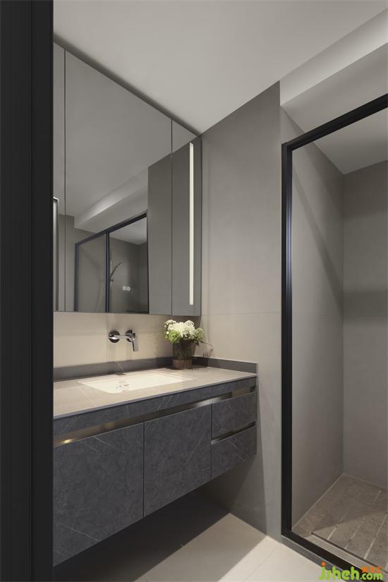 公衛(wèi)同樣延續(xù)灰色調(diào),通過深淺不一營造層次感,打造出寧靜的氛圍。成都新綠季節(jié)家裝設(shè)計(jì)空間擁有著整潔便利的柜體收納,在視覺上顯得格外開敞。