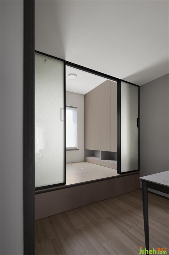 成都新綠季節(jié)家裝設(shè)計(jì)師根據(jù)空間利用頻次,專門打造出一個(gè)多功能榻榻米空間,平日里用來進(jìn)行閱讀、喝茶等休閑活動(dòng)。當(dāng)留學(xué)的兒子回家居住時(shí),便可變身臥室使用。