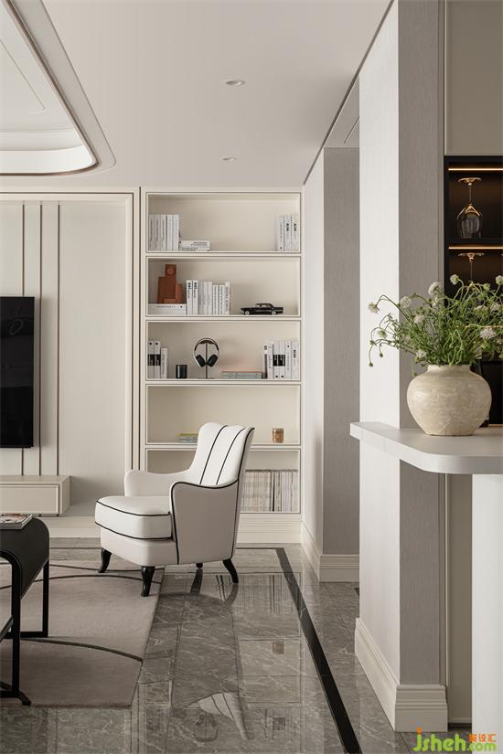 設計師在空間中設置了一個專門的小型水吧臺,對空間功能進行拓展的同時,成都中鐵御花府家裝設計讓整個空間看上去更富于層次。水吧臺延續(xù)空間的白色主調(diào),清新雅觀,開辟出一處理想的互動休閑空間。這里既可以作為用餐區(qū)、娛樂區(qū),還可以作為工作區(qū),供家庭成員在輕松的環(huán)境中完成家庭辦公或?qū)W習任務。