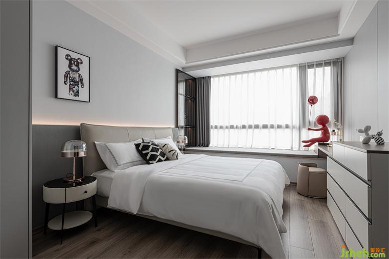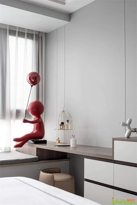 兒子房在極簡(jiǎn)的格調(diào)之下,又充滿著想象力與趣味性。內(nèi)斂穩(wěn)重的灰色,家裝設(shè)計(jì)打造出靜謐安然的休憩環(huán)境。俏皮的藝術(shù)掛畫與雕塑擺件讓整個(gè)空間都充盈著新鮮的活力。