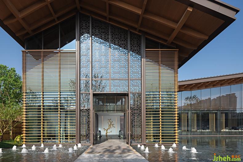 Then you come into the transparent hazy corridor space, it is a penetration of the function in the physical sense, and it also undertake the void and reality in the spiritual world. You will be attracted to the ripping water and the refinement and rhyme revealed by history of Wuyue. The designer uses the green brick, odd stone, emerald bamboo and green pine, as well as elegant Chinese decoration, creating elegant and quiet atmosphere; different scenery and different felling, the architecture and the nature are making interaction with human in the space.