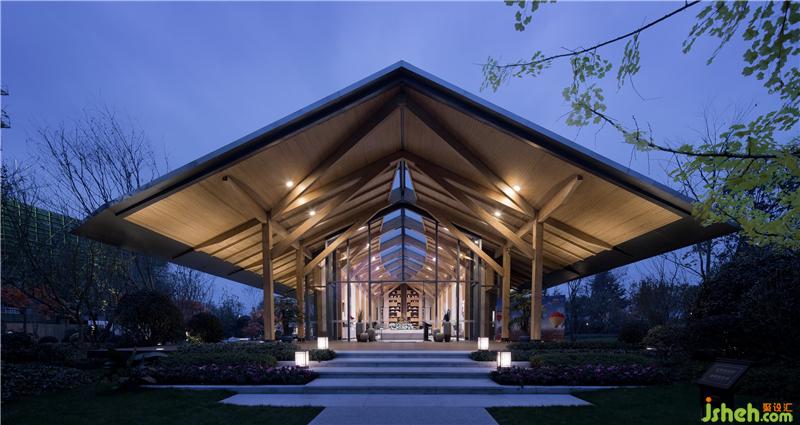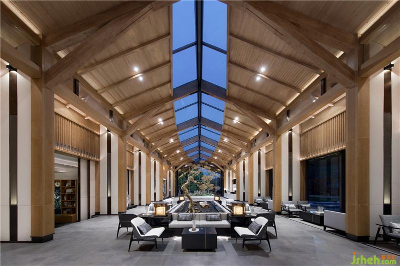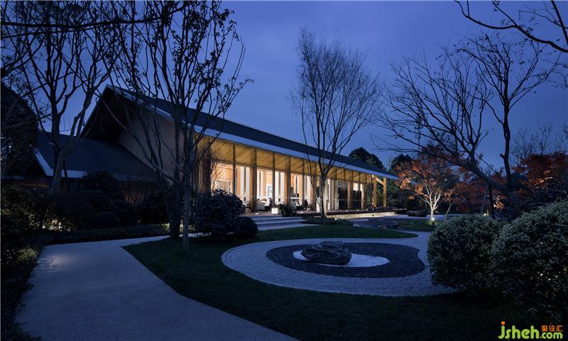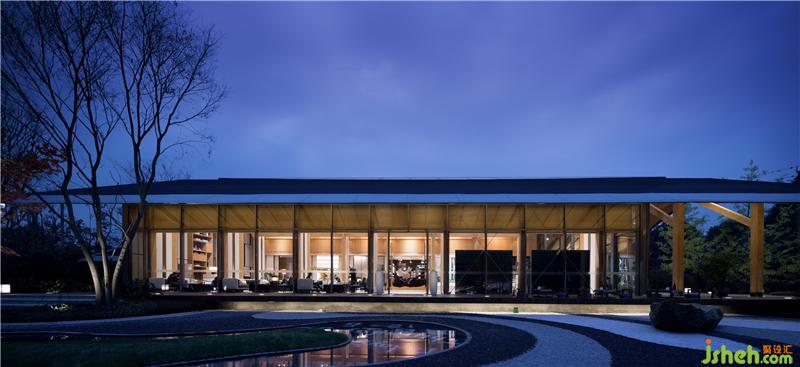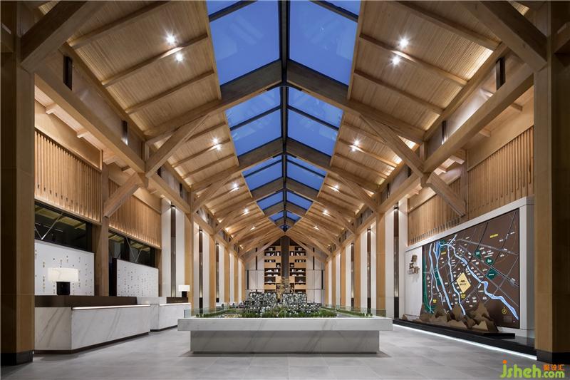 都江府銷售中心受中國(guó)傳統(tǒng)木建筑結(jié)構(gòu)啟發(fā),建筑主體將木結(jié)構(gòu)、現(xiàn)代工業(yè)以及現(xiàn)代人的功能需求做了耦合,以一種簡(jiǎn)單謙遜溫和的姿態(tài)立于大地,傾聽(tīng)山語(yǔ)。園林以水之勢(shì)布局,寫意枯山水優(yōu)雅靜謐。形似川西民居的雙坡頂建筑有一種視覺(jué)上的輕盈感和親和力,中國(guó)傳統(tǒng)建筑空間所注重的室內(nèi)外的相互滲透和交融,讓置身其中的人感受到宅與院,室與景是一個(gè)不可分割的整體。裝修設(shè)計(jì)