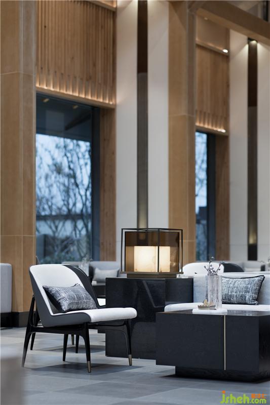 “通過(guò)大面積的玻璃幕墻觀看室外的景色,比在室外看自然景色有著更深刻的意義。”洽談區(qū)營(yíng)造了一處輕松、寫意的交流氛圍,落地窗將山色、樹影、輕霧盡收其中,沙發(fā)的陣列擺放讓空間有條不紊,穿插的藝術(shù)裝置則呼應(yīng)了園林景觀的山水意境,讓身處其間的人們感受到一份寧?kù)o的淡雅和沉淀的安然。裝修設(shè)計(jì)