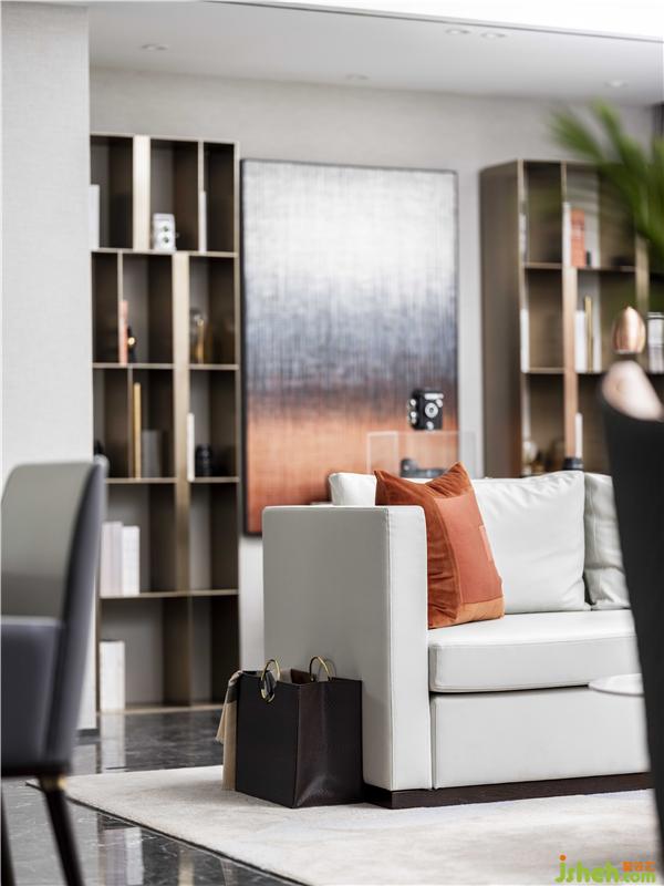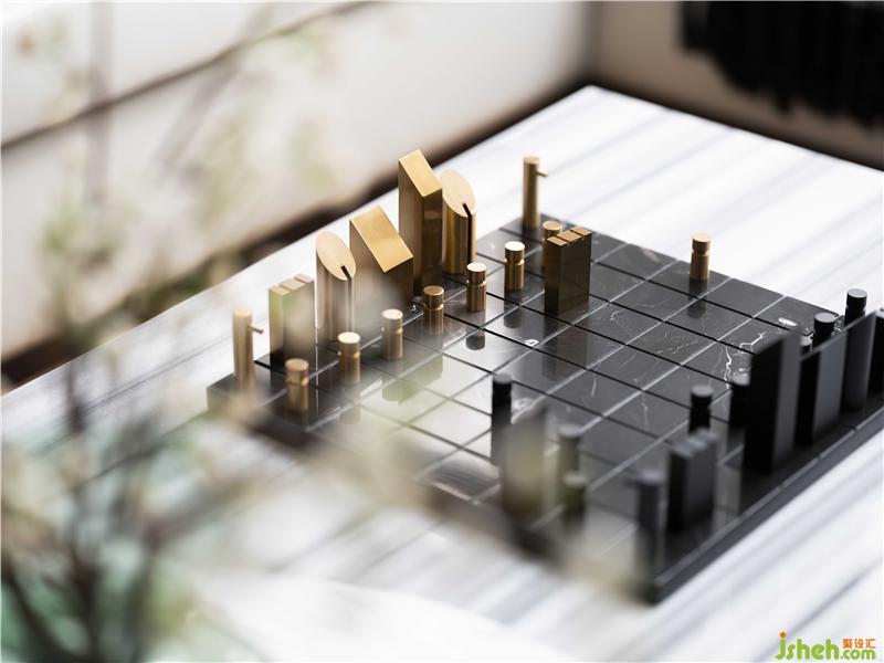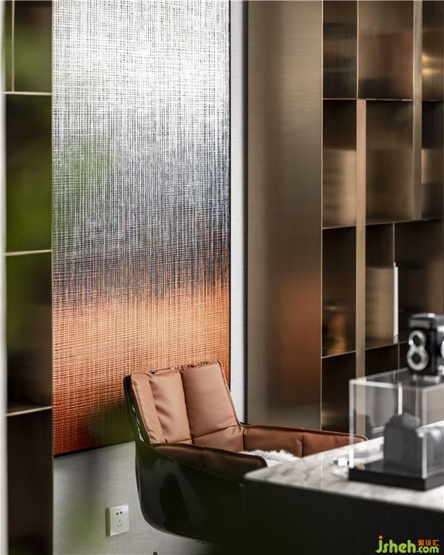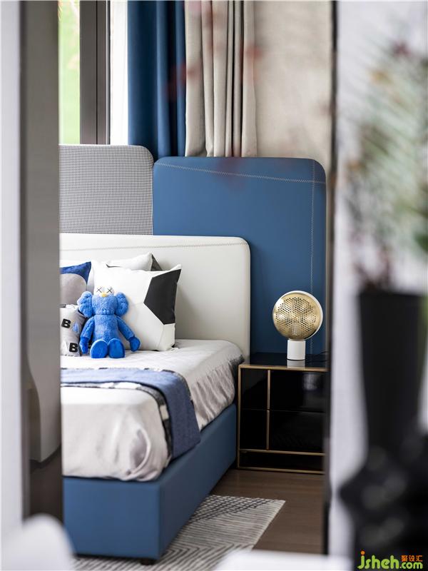 幾何不再只是生硬的線條,看似不規(guī)則的圖案,實(shí)則嚴(yán)謹(jǐn)且有秩序的將空間體量簡化。在幾何元素的抽象表達(dá)下,臥室的格調(diào)變得理性,并且擁有時尚前衛(wèi)的氣息。樣板房設(shè)計(jì)