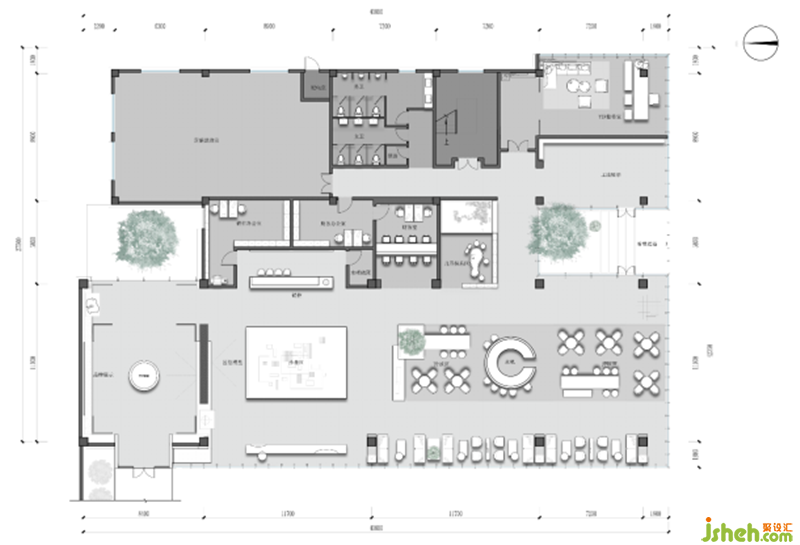 設(shè)計(jì)師希望通過(guò)有序的、內(nèi)涵的屋頂界定整個(gè)銷售空間,將其打造成為一個(gè)室內(nèi)外結(jié)合的有機(jī)整體。