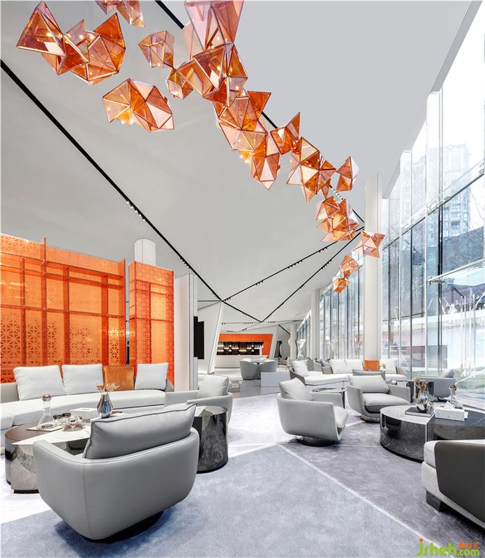 大面積玻璃幕墻構(gòu)建出通透的場(chǎng)域感,富于動(dòng)態(tài)、整潔靈活的室內(nèi)造型語(yǔ)言,以及橙與白的色彩搭配,成為吸引人們視覺的焦點(diǎn),傳遞出“萬(wàn)家燈火”、“楓橋夜泊”的歸家意境。。裝修公司