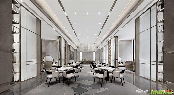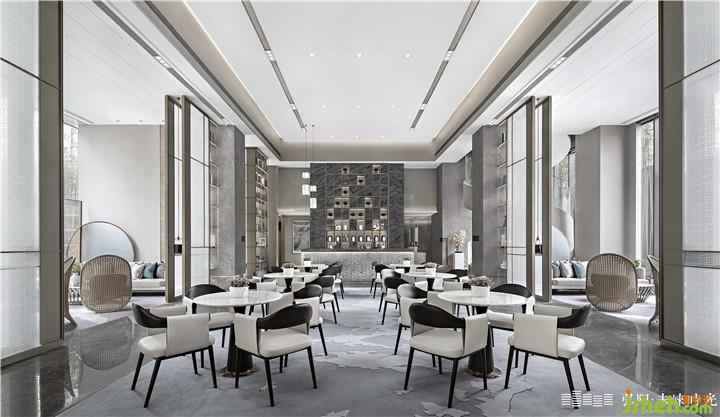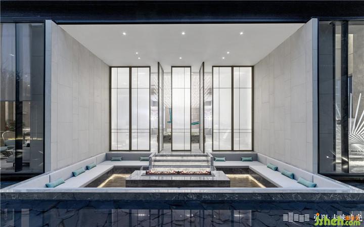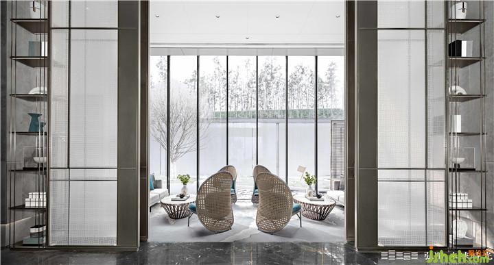 “風(fēng)吹竹葉休還動(dòng),雨點(diǎn)荷心暗復(fù)明?!鄙潮P上方簌簌竹葉,風(fēng)過可聞沙沙聲。沙盤左側(cè)可通往戶外水景區(qū),至嵌入式水景的靜心休息區(qū)坐下,便是一方令人沉醉的小世界,眼前翠竹綠水,腦海里無他,拾得一刻理想生活。窗里以竹編織生活藝術(shù),將竹印記刻于墻上;窗外竹林櫛風(fēng)沐雨,壯志凌云,演繹東方田園詩格律之美。洽談區(qū)呈對(duì)稱格局,通過藝術(shù)屏風(fēng)的序列勾勒空間,強(qiáng)化空間的儀式感,彰顯理性序列之美。藝術(shù)屏風(fēng)取意竹編的形,通過夾絲玻璃體現(xiàn),更多了一份靈動(dòng)、悠久??臻g筆觸洗煉,配色簡潔,金屬與木紋在高級(jí)灰的基底中作為勾勒點(diǎn)綴,表達(dá)出人文氣度與品質(zhì)感。室內(nèi)園林小品作為空間分區(qū)的起點(diǎn),起到引導(dǎo)動(dòng)線的意義,也在動(dòng)與靜之間,寫下一個(gè)優(yōu)雅的提示信號(hào)。售樓處設(shè)計(jì)