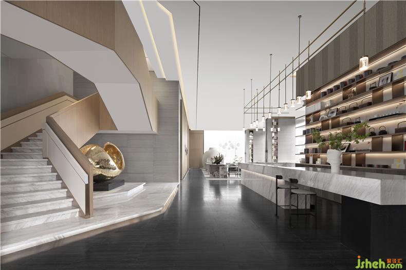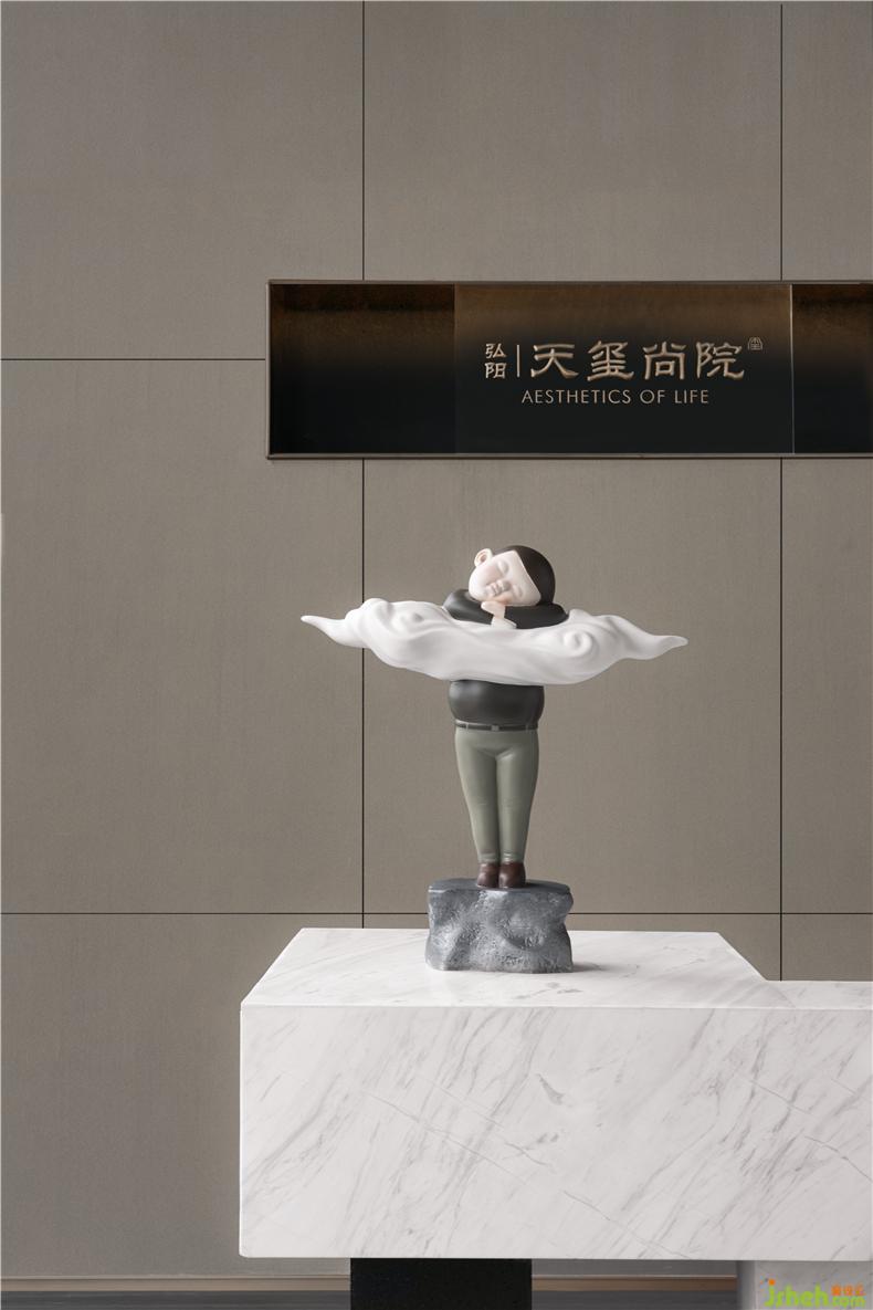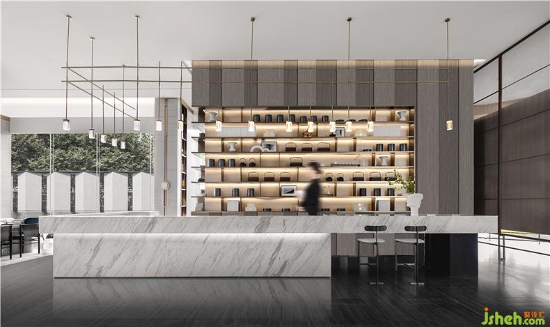 接待臺整體采用白色大理石,擺放的藝術(shù)裝置也頗有考究。室內(nèi)設(shè)計師藝術(shù)裝置《下一刻將會發(fā)生什么》視覺吸引的同時還能有自我思考的空間,增強(qiáng)用戶在空間內(nèi)的情感互動,帶來更多的傳播性和體驗(yàn)性。