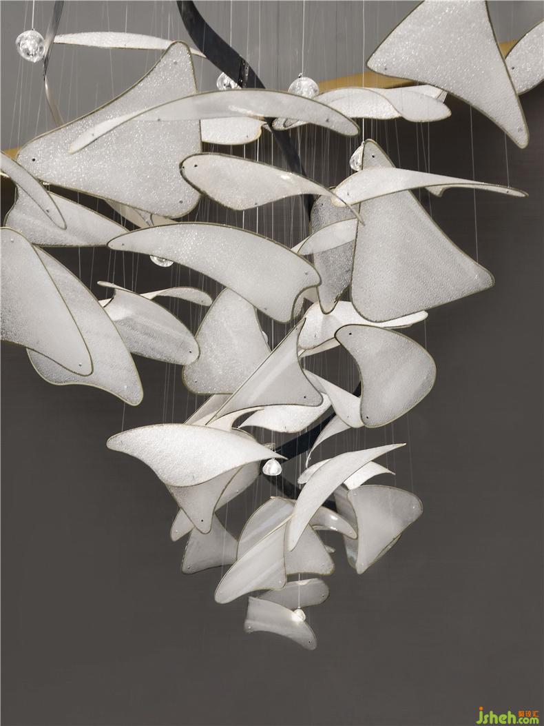 下一刻,即此刻。主創(chuàng)設(shè)計團(tuán)隊(duì)提取云夢澤的形狀,演變?yōu)樯潮P區(qū)上方的吊燈。室內(nèi)設(shè)計師武漢漢南的地域自然元素在此聚焦呈現(xiàn),漁舟高低錯落層次分明懸于空中;天地融合,寧靜深遠(yuǎn)亦恢宏磅礴。