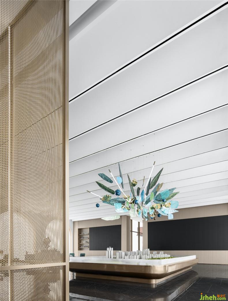 伴隨著光影流動(dòng)進(jìn)入二樓,沙盤(pán)區(qū)以通感的手法融匯感官與視覺(jué)的連通,實(shí)驗(yàn)性的重構(gòu)與延續(xù)。設(shè)計(jì)師受到自然世界生命的獨(dú)特性和復(fù)雜性的啟發(fā),運(yùn)用玻璃定制出與空間共生的燈光雕塑,室內(nèi)設(shè)計(jì)師它通過(guò)隨機(jī)性創(chuàng)造和諧的方式,將生命帶入室內(nèi),令空間飽含生命的活力與意志的自由。