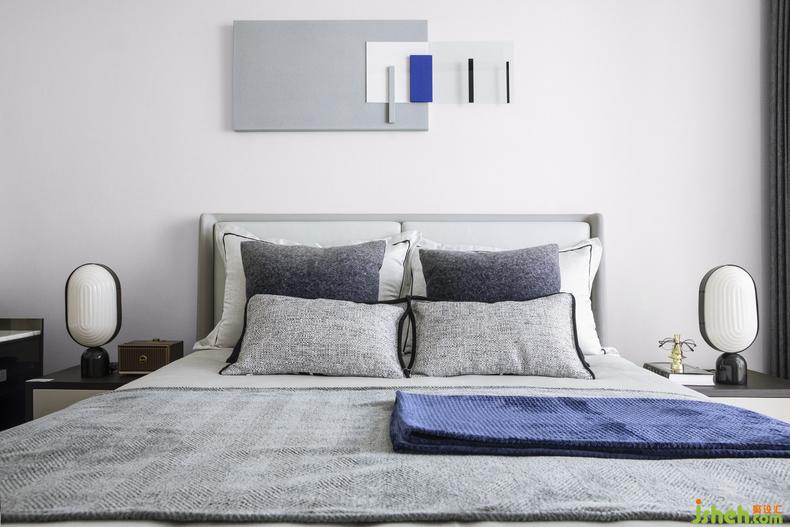 次臥的設計語言將簡約發(fā)揮到極致。墻面掛畫的圖案如同鋼琴鍵一般,舒緩地演奏現(xiàn)代簡約風格的樂章。