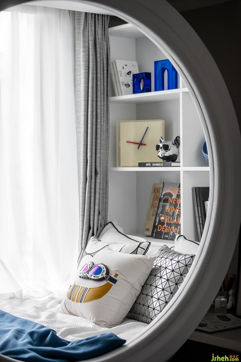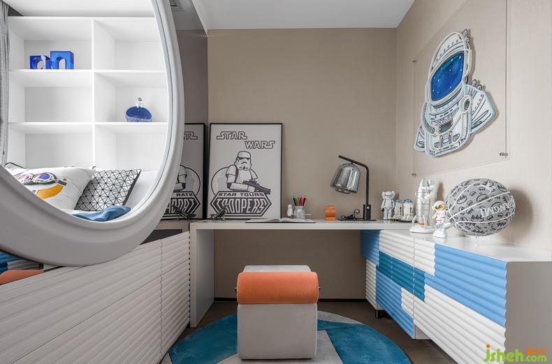星戰(zhàn)主題兒童房給予暢想更多可能,充裕的學(xué)習(xí)區(qū)域為孩子提供自由的探索空間。