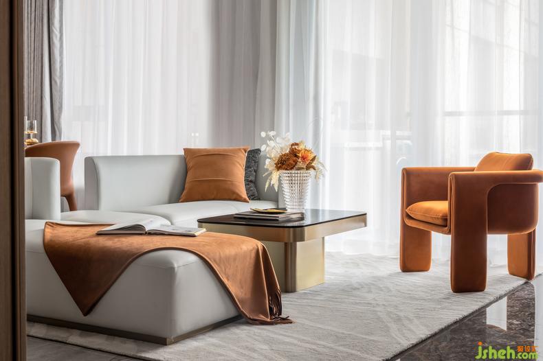 典雅簡潔的卡因斯棕配合光影與透明度,構(gòu)筑起105戶型的設(shè)計內(nèi)核。