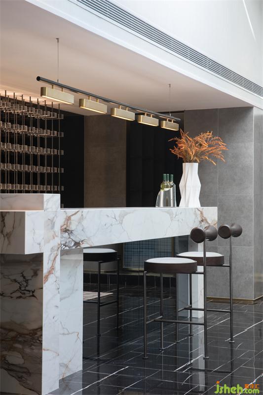 精于內(nèi),奢于境,克制的奢華達(dá)到品味的極致追求。整個(gè)設(shè)計(jì)理念在這里隨處可見,別墅裝飾水吧的別致設(shè)計(jì),厚重與輕盈交織。墻面極簡(jiǎn)的設(shè)計(jì)形式卻解鎖了空間的延伸,創(chuàng)造了無限視覺和格局感,增加了體驗(yàn)的閑趣。