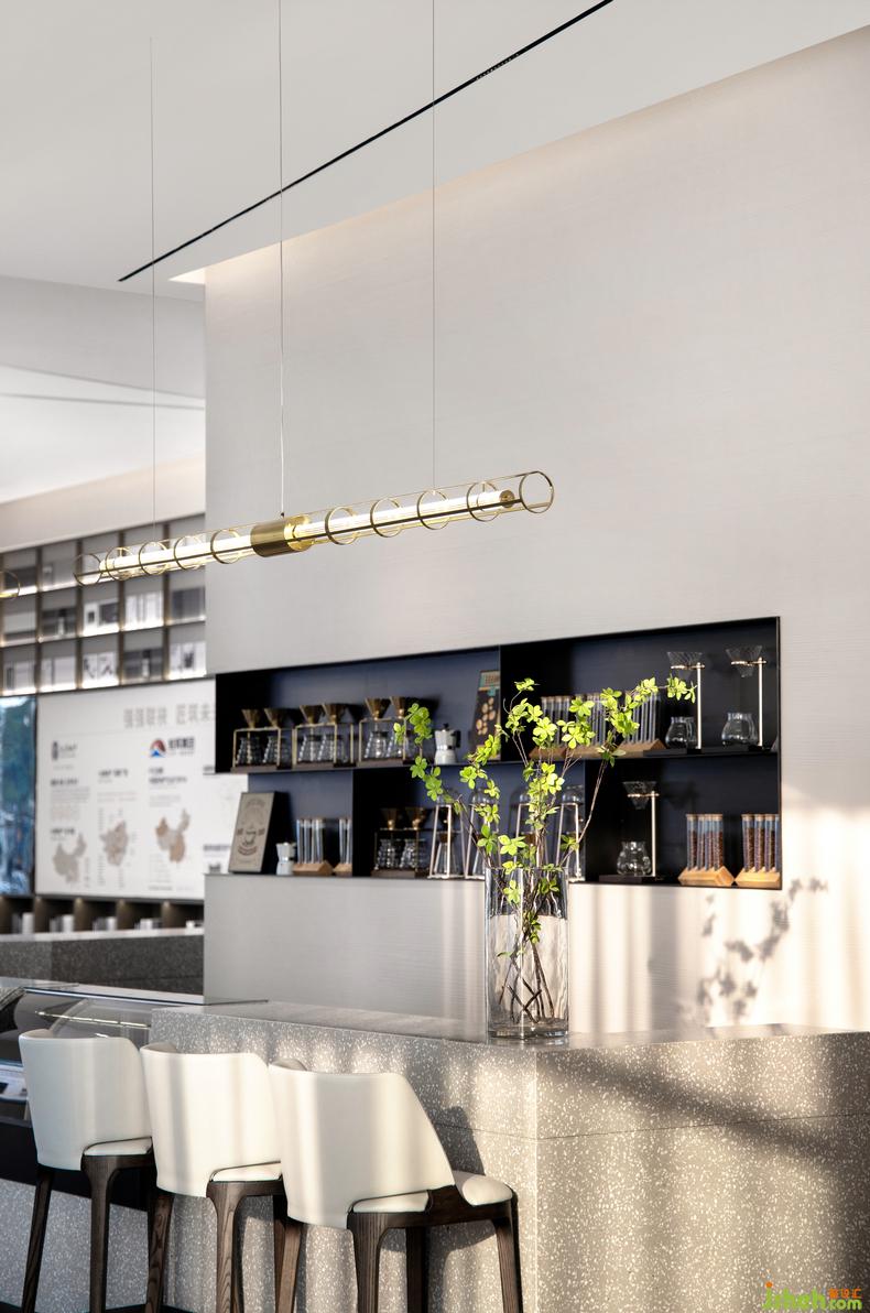 金屬、木質(zhì)與透明玻璃的結(jié)合充分融入現(xiàn)代摩登氣質(zhì),用咖啡主題點(diǎn)亮這一方天地,重構(gòu)人與空間的關(guān)系,給沉浸式體驗(yàn)帶來更多可能性。