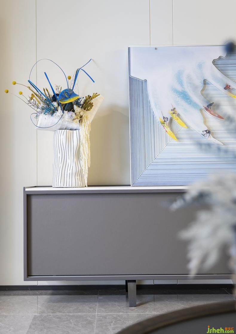 客廳墻的掛畫亦是海浪的抽象化表達(dá),悉數(shù)回憶終筑美好愿景。