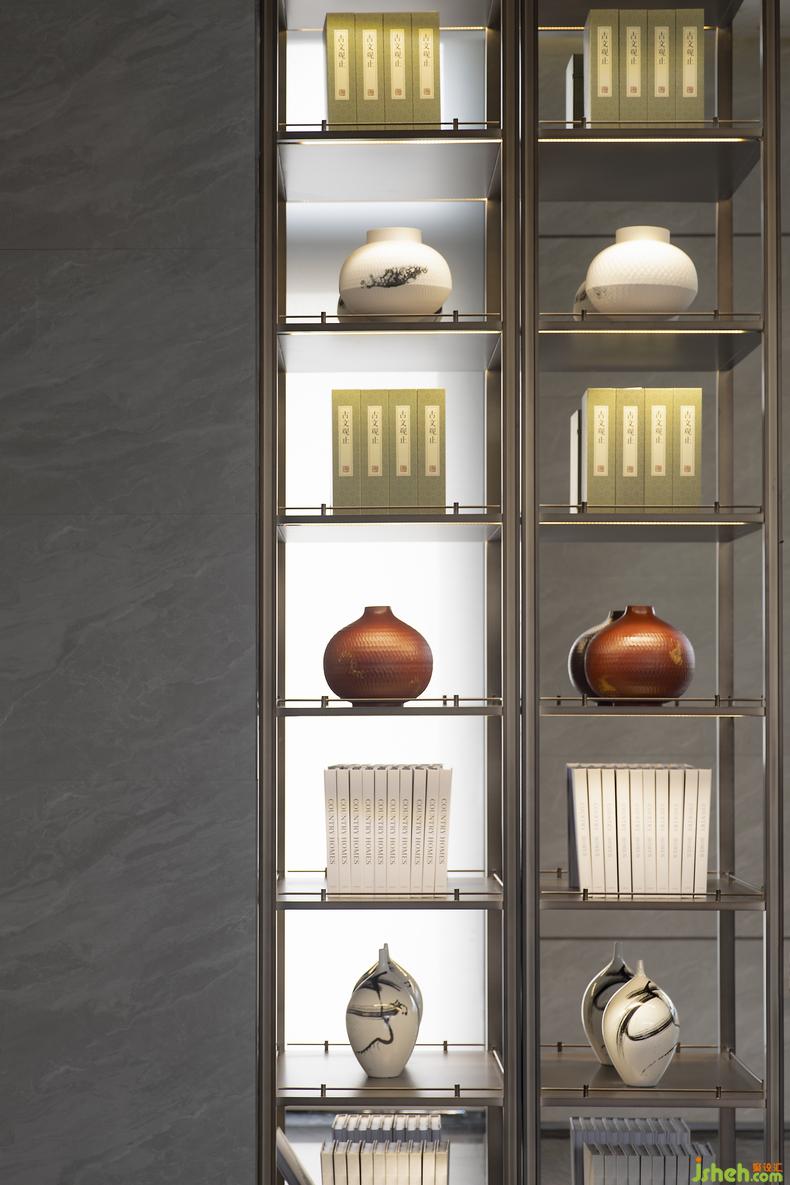 水吧延續(xù)這份古韻,整個空間在灰白色調(diào)上點綴丹秫跟金屬色,售樓處設(shè)計搭配出對比感極強的置物柜作為肌理分明的大理石吧臺背景。而上方懸空的藝術(shù)燈飾如同浩蕩水流,帶著人們感受空間的韻律感,將那故事娓娓道來。