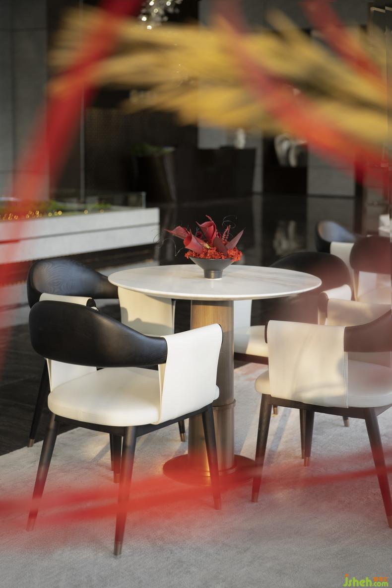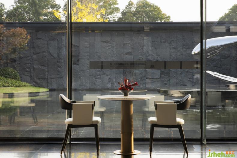 “納自然之形,建空間之意”是極其重要的東方美學(xué)思想。洽談區(qū)充分利用自然,售樓處設(shè)計用大面積的落地玻璃窗將自然和光影結(jié)于一庭,室外之景納入眼簾。窗外的庭院與樹和室內(nèi)沙盤區(qū)相映成趣,東方古韻與現(xiàn)代展望融匯一體,傳遞著美好人居的理念。